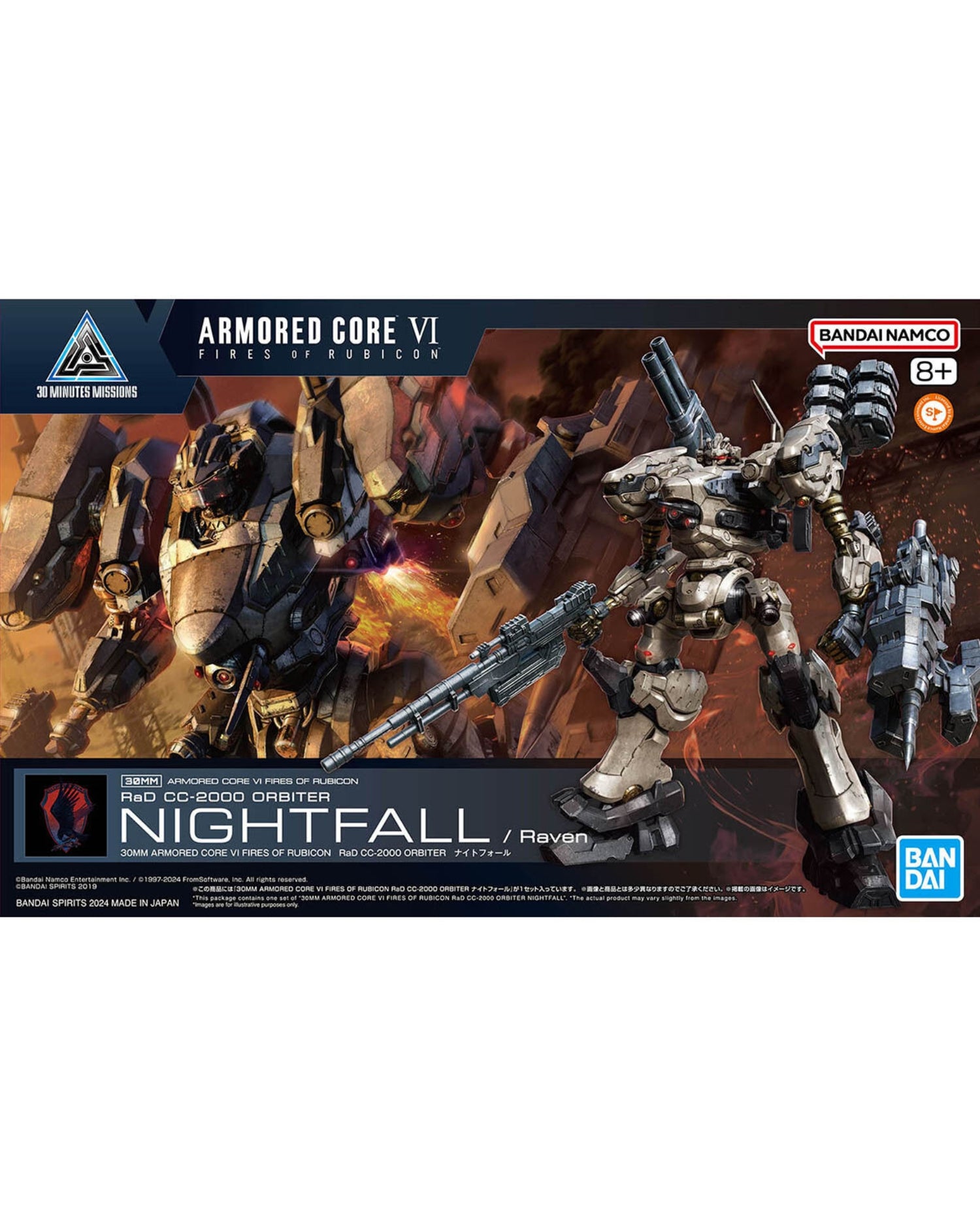 "Armored Core VI: Fires of Rubicon" now joins the 30 MINUTES MISSIONS series! Staying true to the series' core concepts of Simple Assembly and Custom Play, the formidable AC "Nightfall" piloted by Raven is now available.
