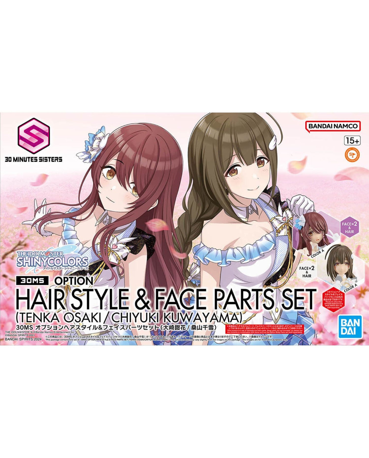 This product comes with a set of hairstyle and face parts for "Osaki Tenka" and "Kuwayama Chiyuki"! You can dress up the idols in various costumes by combining them with the separately sold 30MS option parts.