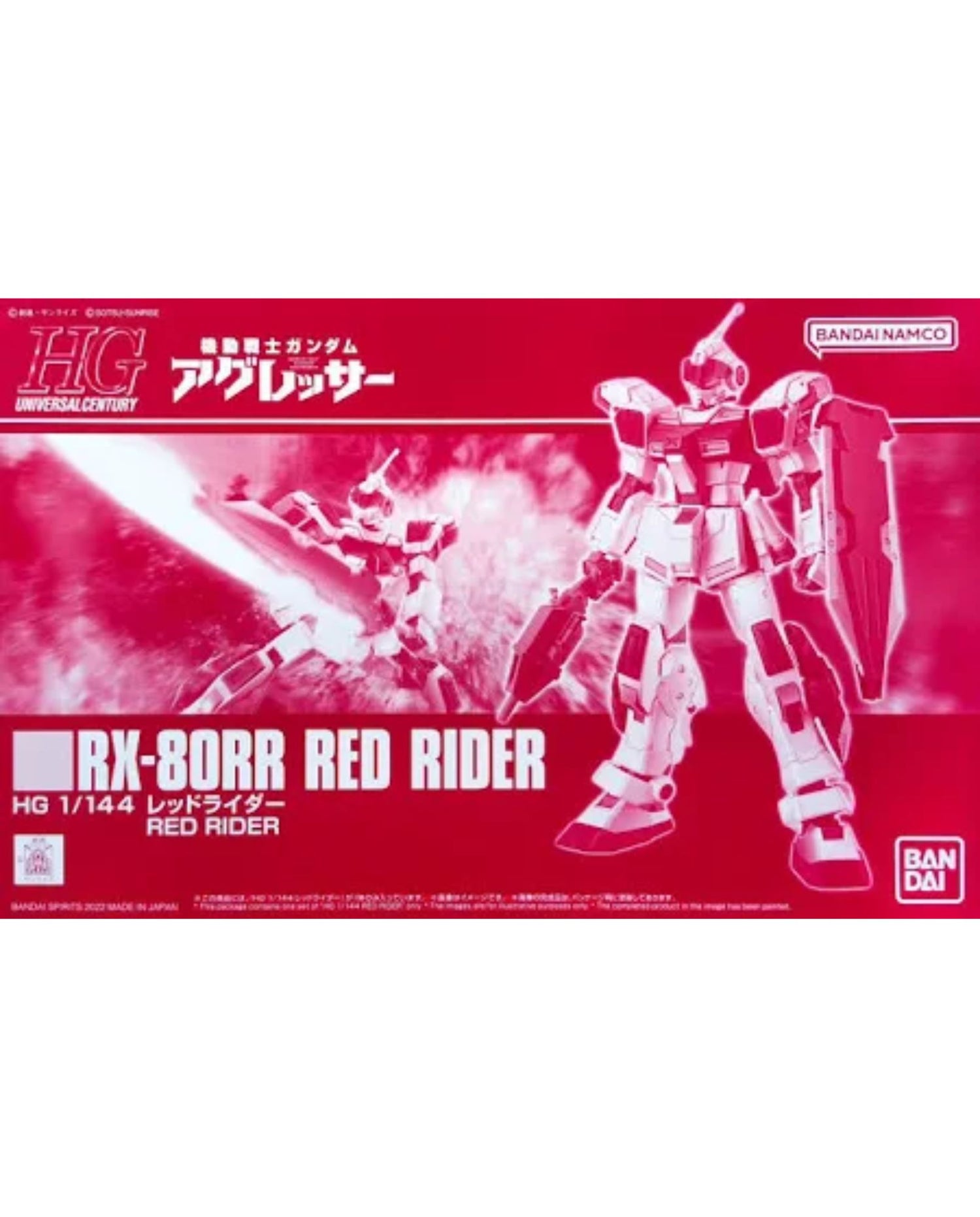 "Pail Rider Project" RX-80RR Red Rider from Mobile Suit Gundam Aggressor joins the HG series lineup. Based on the HG Pail Rider, this model faithfully recreates the unique shape of the Red Rider and allows for dynamic poses using its signature weapon, the Zwei Soldat. The head, chest, and leg armor are newly molded, and the shoulder joints have been restructured for improved movement, allowing the shoulder parts to swing forward.