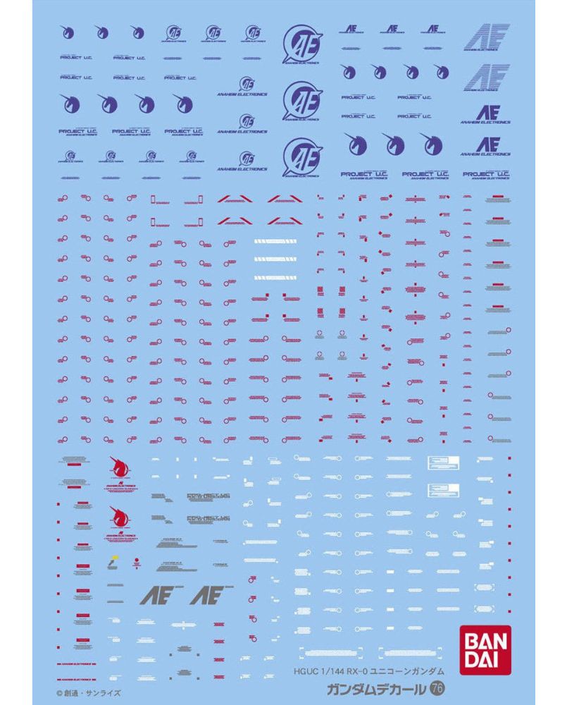 Gundam Decal No.76 HGUC 1/144 Unicorn Gundam