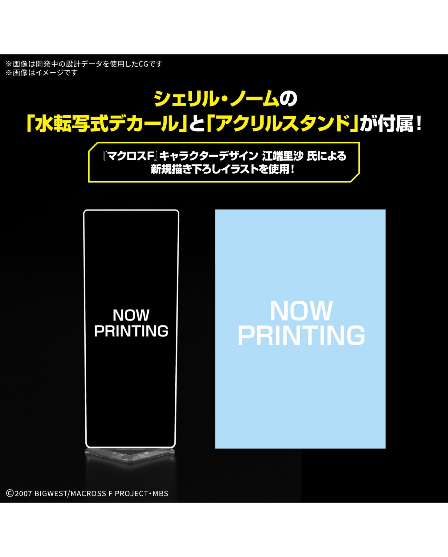 Deluxe Extras – Acrylic stand and water-transfer decal featuring a newly drawn illustration of Sheryl Nome by Macross F character designer Risa Ebata