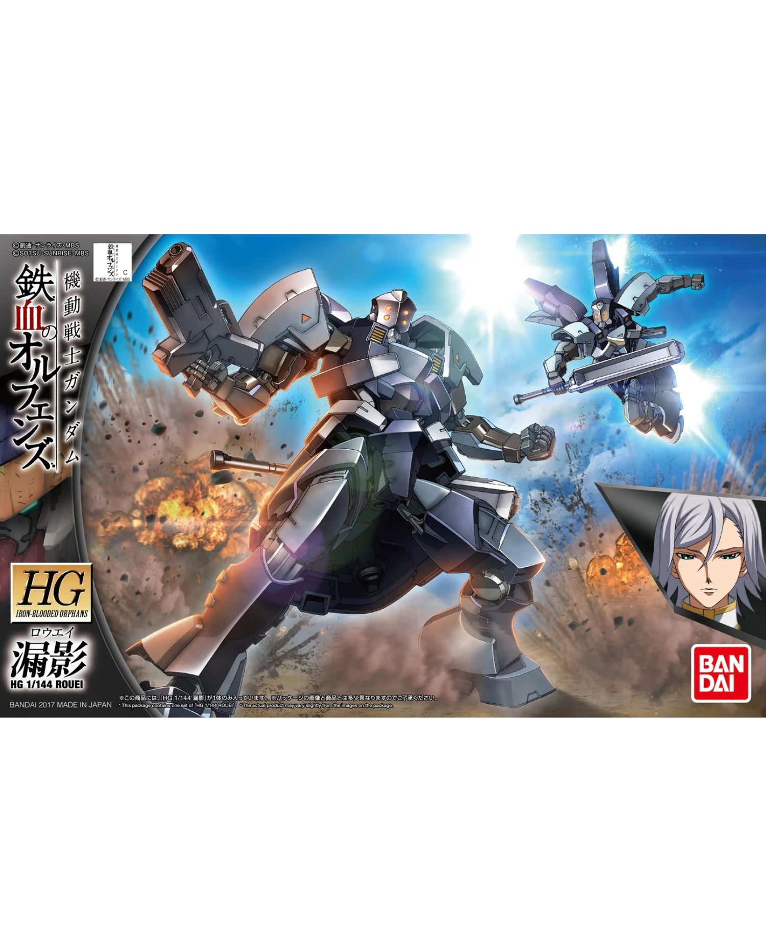 The HG 1/144 Rouei is a mobile suit from the popular anime series, "Mobile Suit Gundam: Iron-Blooded Orphans." This impressive unit is actually Turbine's Hyakuren unit in disguise, outfitted with unique armor to aid the Tekkadan group. The kit includes parts for a heavy club and hand gun, with color-molded pieces and stickers for custom markings.