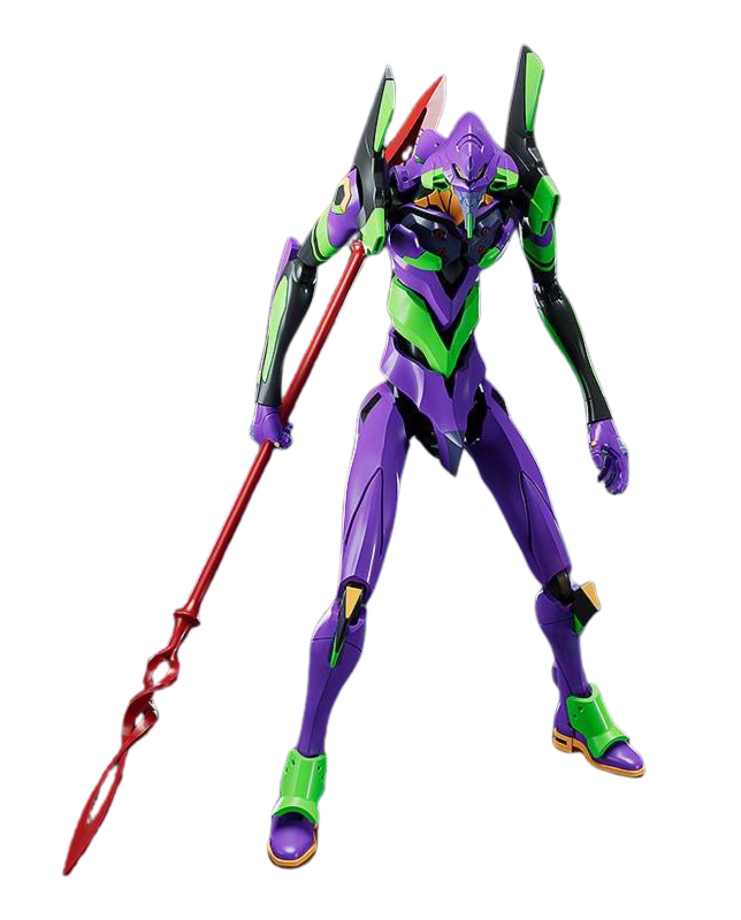 From the anime film series "Rebuild of Evangelion" comes a MODEROID plastic model of Evangelion Unit-01 in an easy-to-collect size and affordable price! Model is 165mm in height when assembled. and the model's joints are articulated for easy posing. The Spear of Cassius and a Pallet Rifle are included. The various parts of the mecha have been separated into runners of six colors (purple, green, gray, black, red and orange) and pre-painted parts, and the model kit also comes with stickers, making it easy to recreate the mecha from the series with a simple assembly.