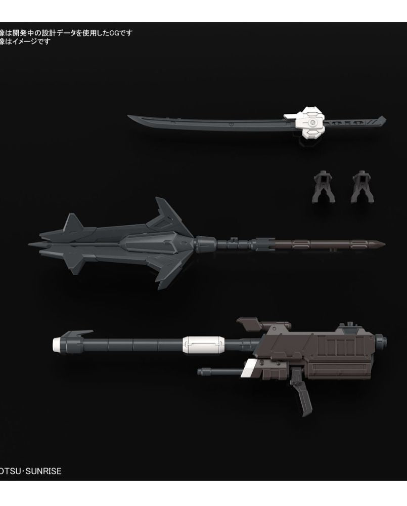A sword, 300mm smoothbore cannon, and mace can be mounted on the backpack. The 300mm smoothbore gun can be transformed into a stored state by pulling out the barrel and rotating it 180 degrees.