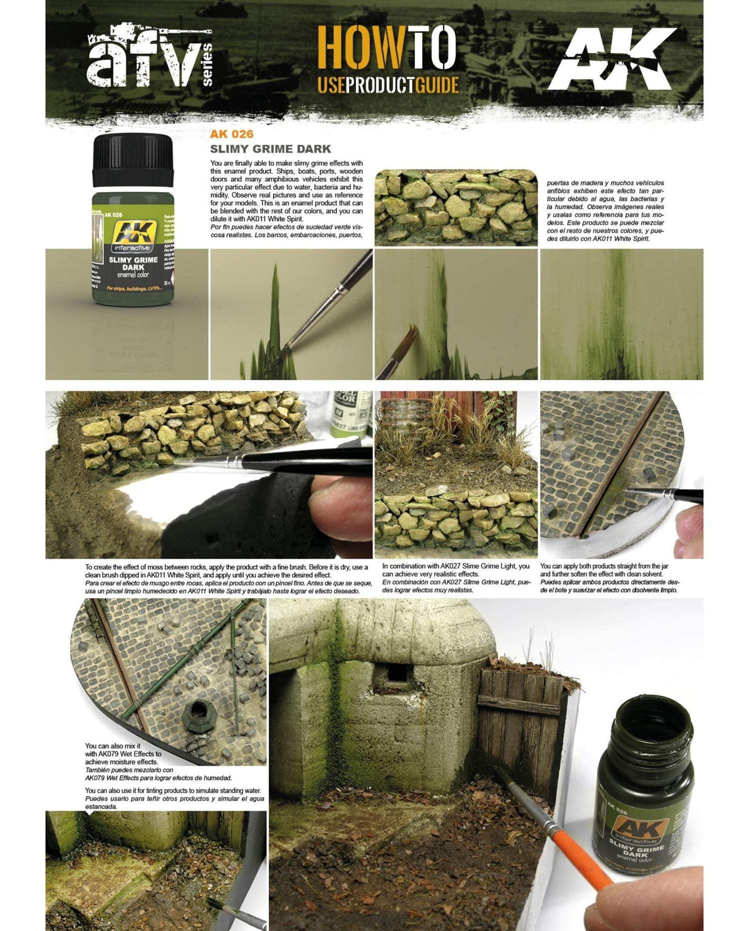 Enhance your models with a realistic touch of slimy, mossy surfaces. Achieve this effect by applying the dark green color and blending with a damp brush moistened with Enamel Thinner. From ships and boats to wooden doors, this effect is particularly suited for amphibious vehicles due to the presence of water and humidity. Use real pictures as reference for best results, and consider using Slimy Grime Light for an even more dynamic effect.