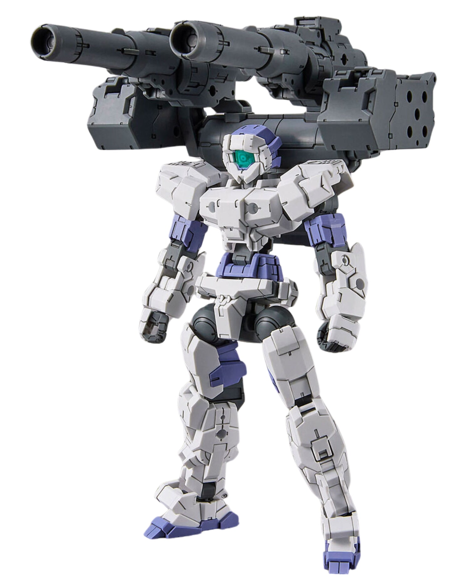A newly available weapons set is now offered, featuring heavy and large weapons that are specially designed for 1/144 scale kits. Enjoy the vast array of customization options with the hard points on each weapon and the included abundant joints. The backpack can accommodate cannons and missile pods, which can be connected vertically with the included joints.